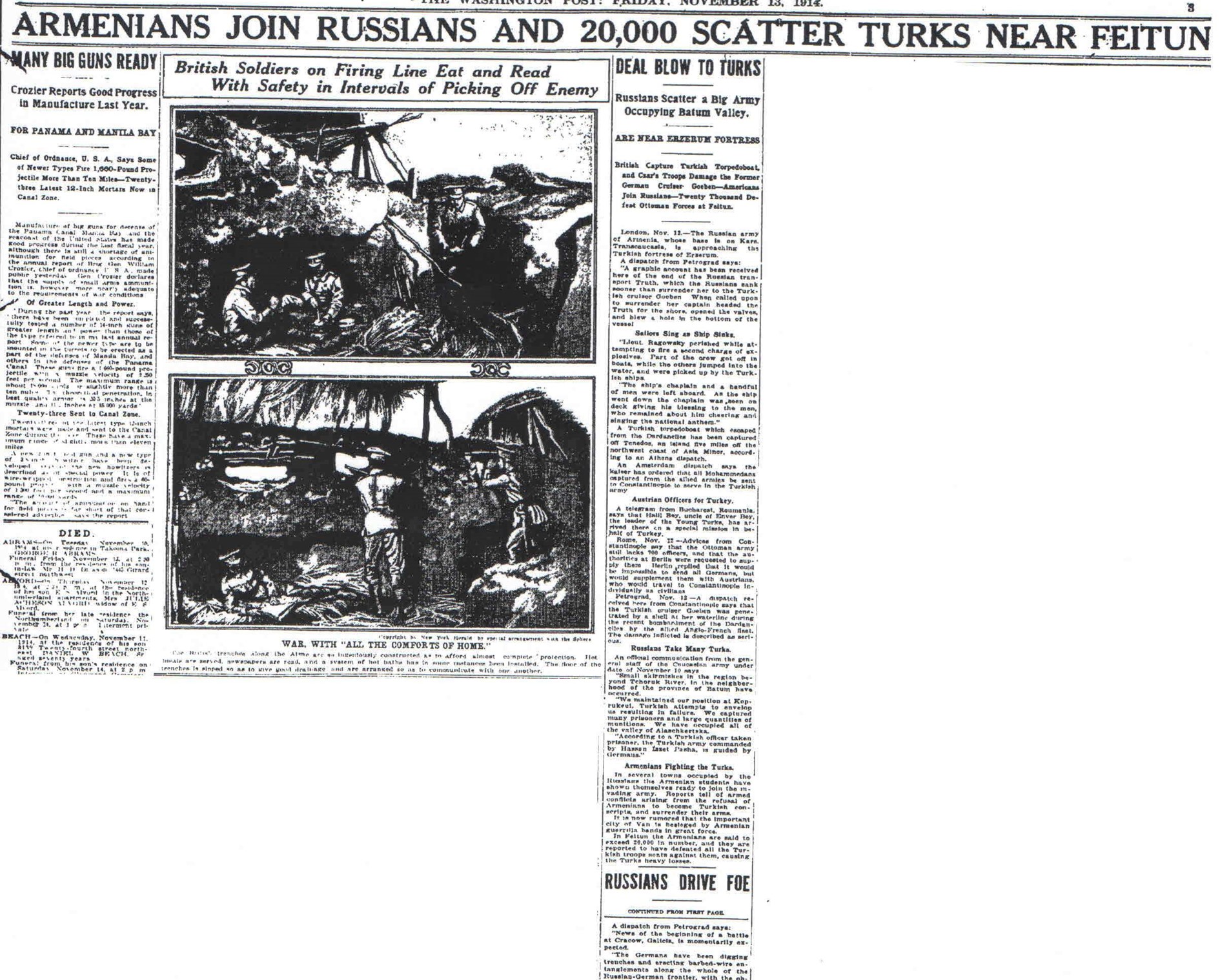 13 Kasım 1914 Tarihli Washington Post Gazetesi Haberlerinin Özet Tercümesi:
