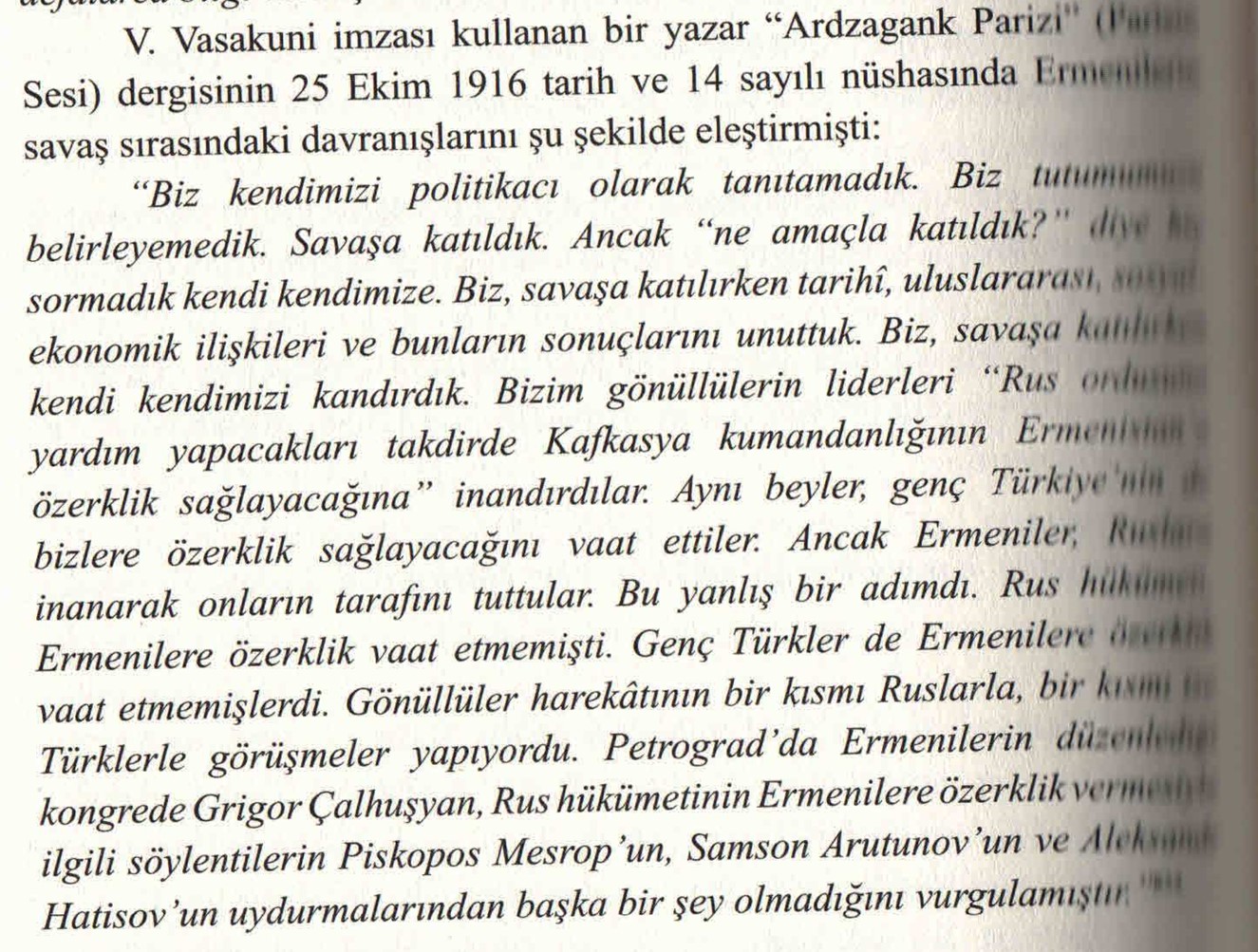 V. Vasakuni imzasıyla 25 Ekim 1916 Tarihli “Andzaganank Parisi” Dergisine gönderilen bir yazı